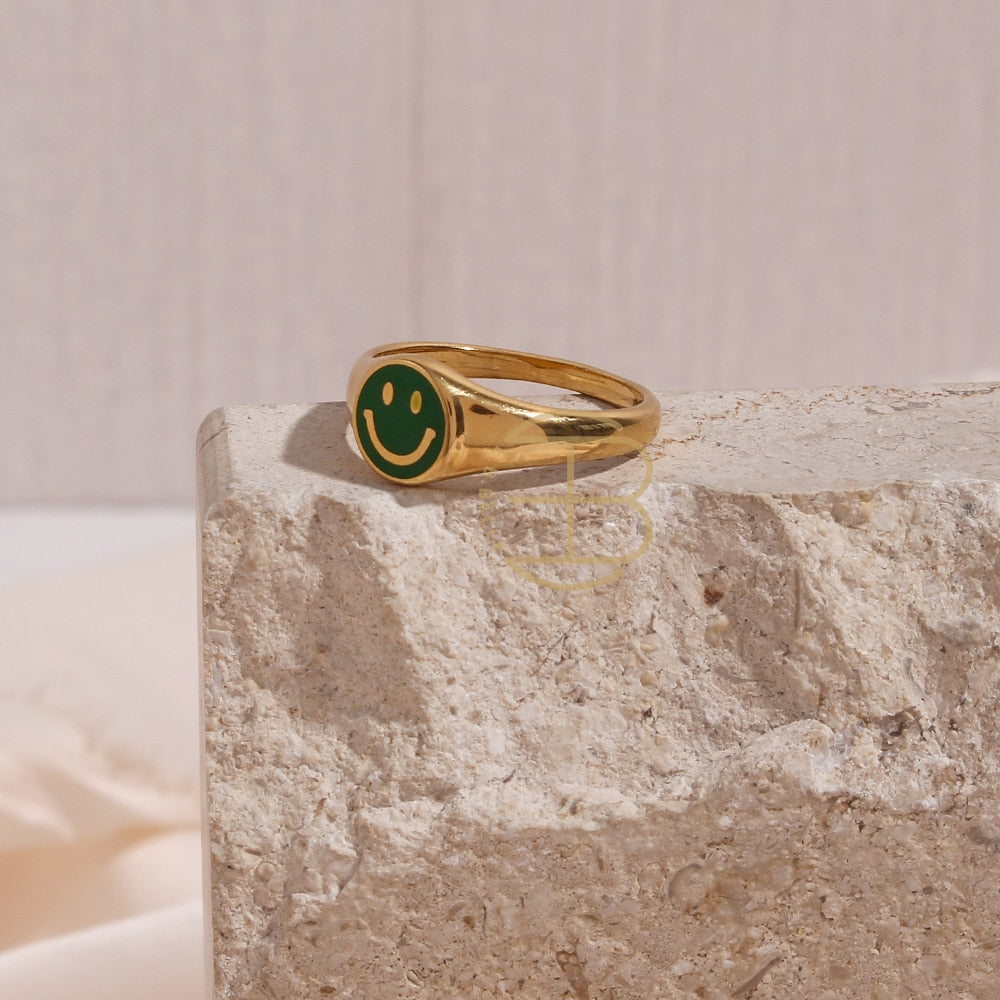 Introducing our Smiley Face Rings For Women! Made of high quality stainless steel, these rings are tarnish free and perfect for everyday wear. The enamel happy smiley face design is 18K gold plated, making it both fashionable and eye-catching. Whether you're dressing up for a special occasion or just wanting to add a little fun to your everyday style, these rings are a great choice. Whether you choose to wear one or stack them up, they're sure to put a smile on your face. So hot right now, don't miss out on this must-have accessory. Order yours today!